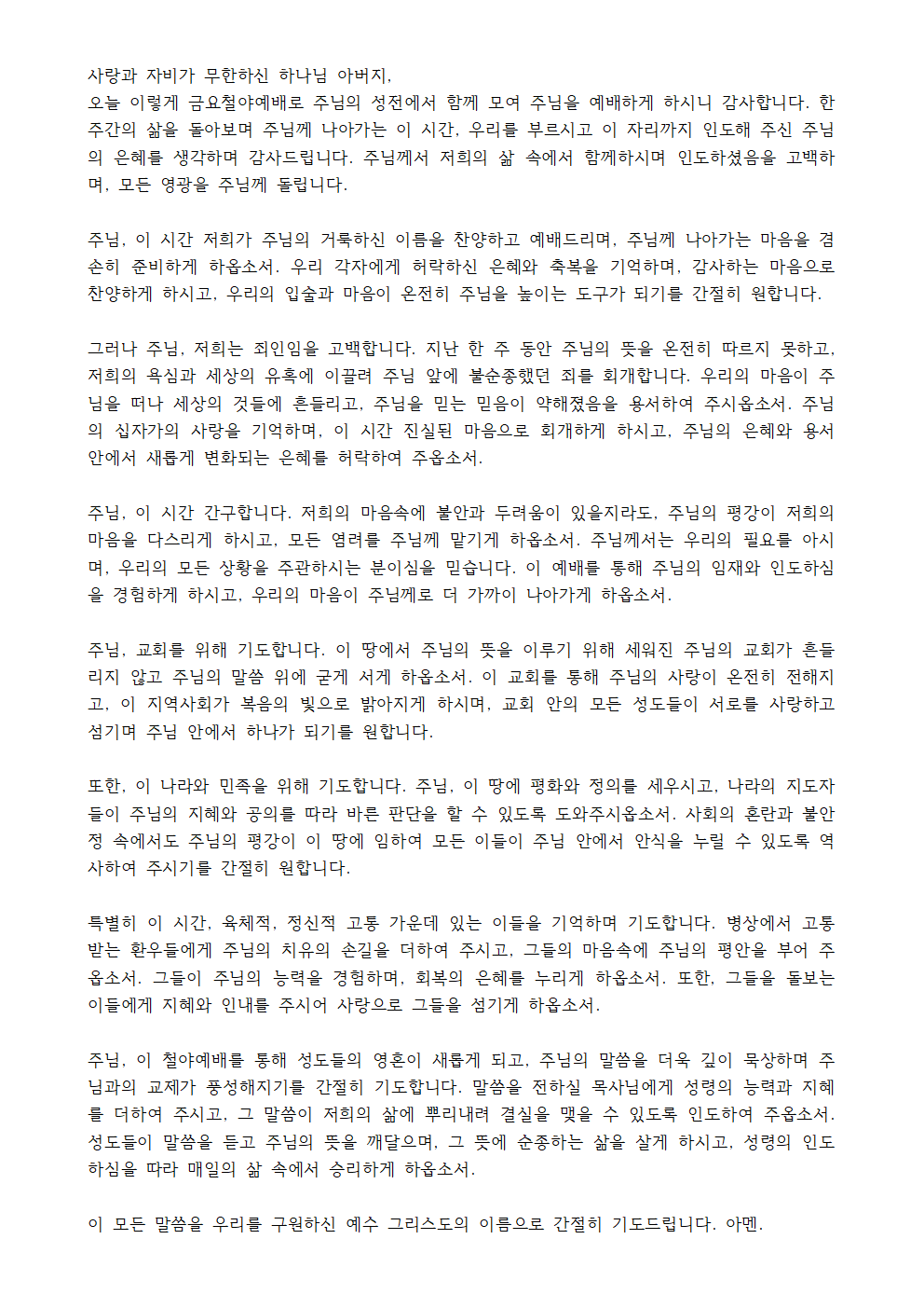 '금요철야예배 대표기도문'