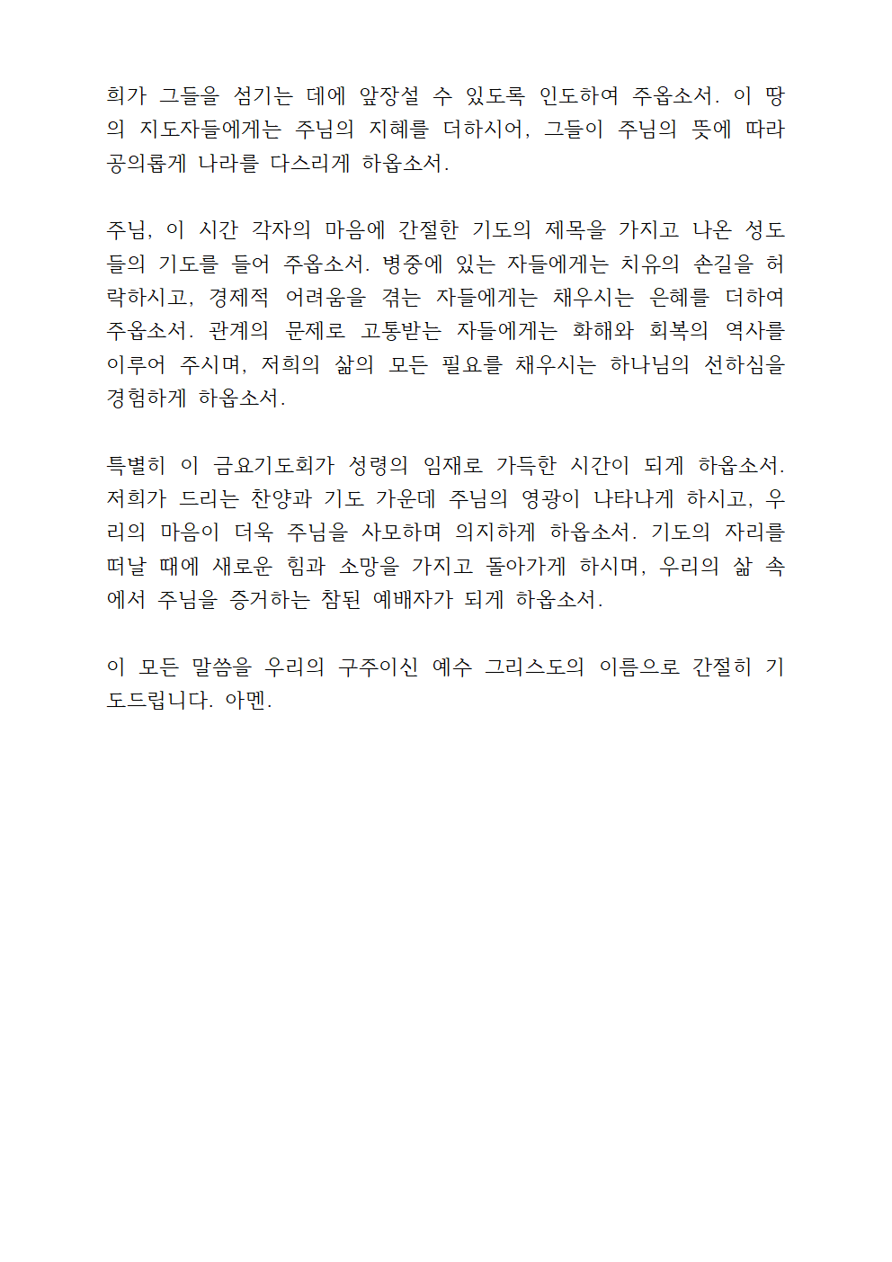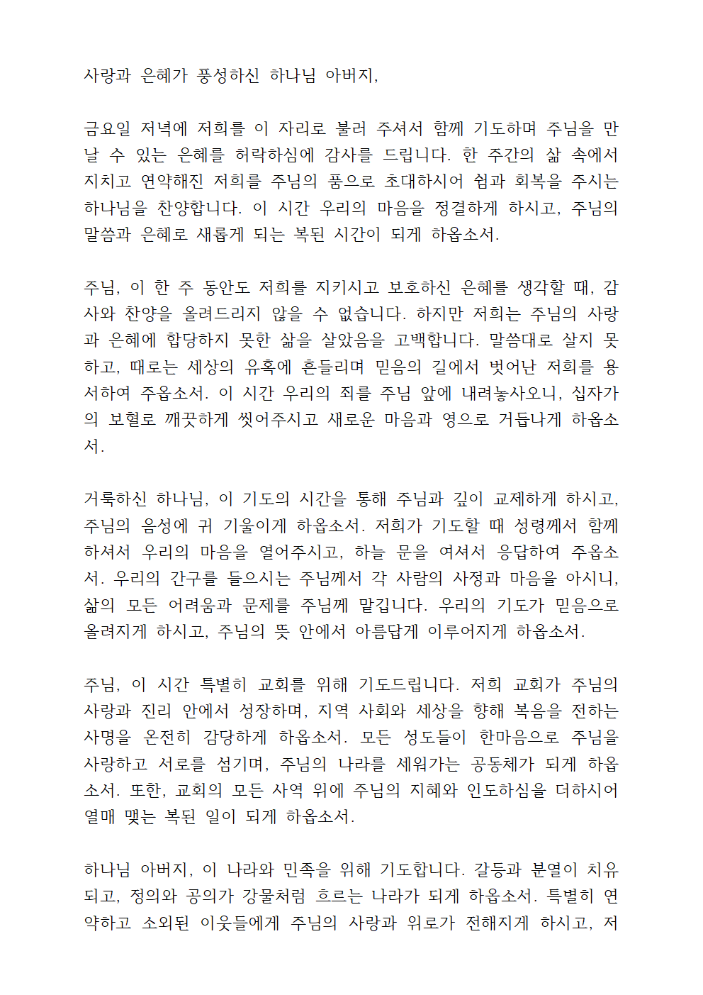 금요기도회 기도문