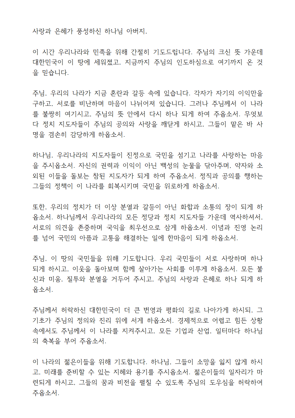 나라를 위한 기도문