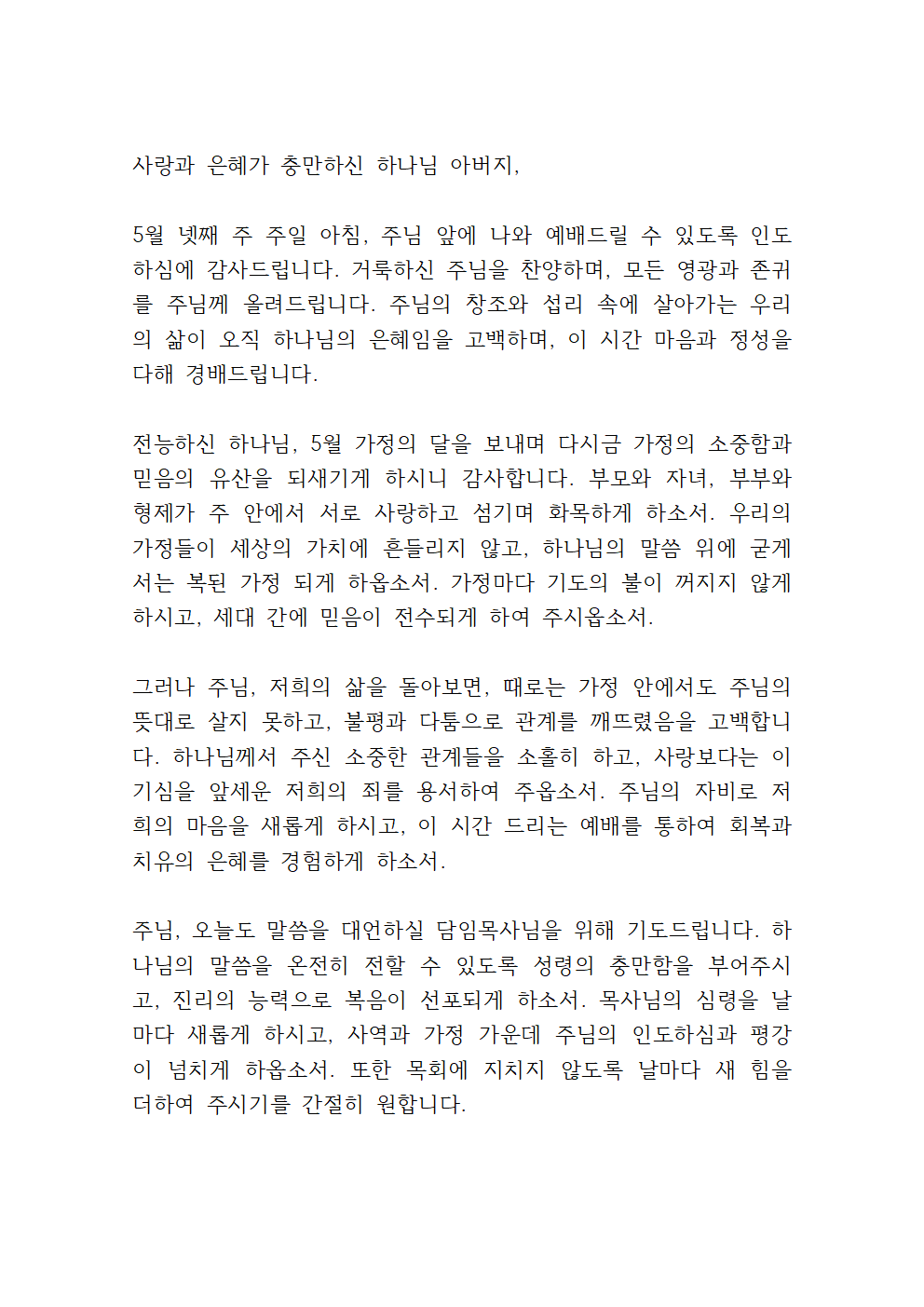 각 상황과 형편에 따라 이번 기도문을 사용하실 수 있도록 기도문 첨부파일(한글문서, PDF 문서)을 올려드릴 테니