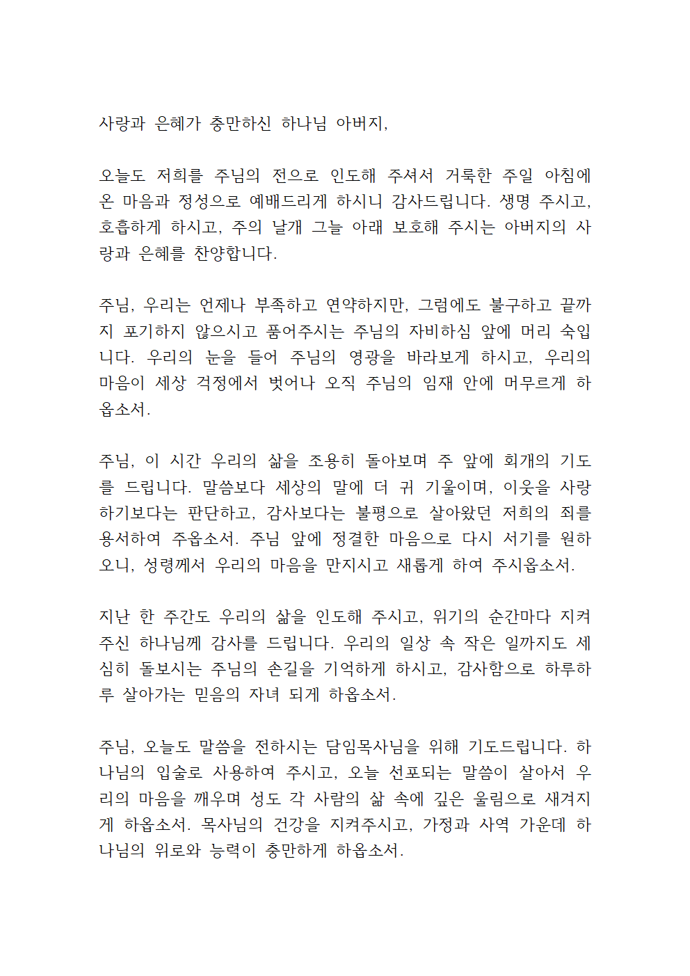 '대표기도문 모음 3 종류 (주일, 주일낮, 수요)'