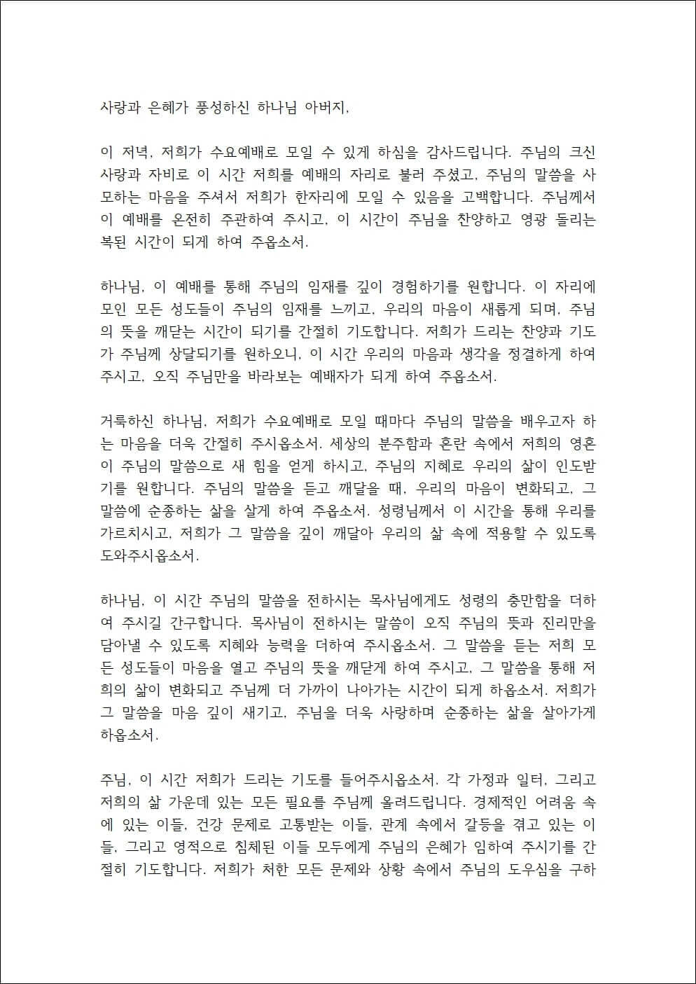 '수요예배 대표기도문 (수요저녁예배 기도문)'