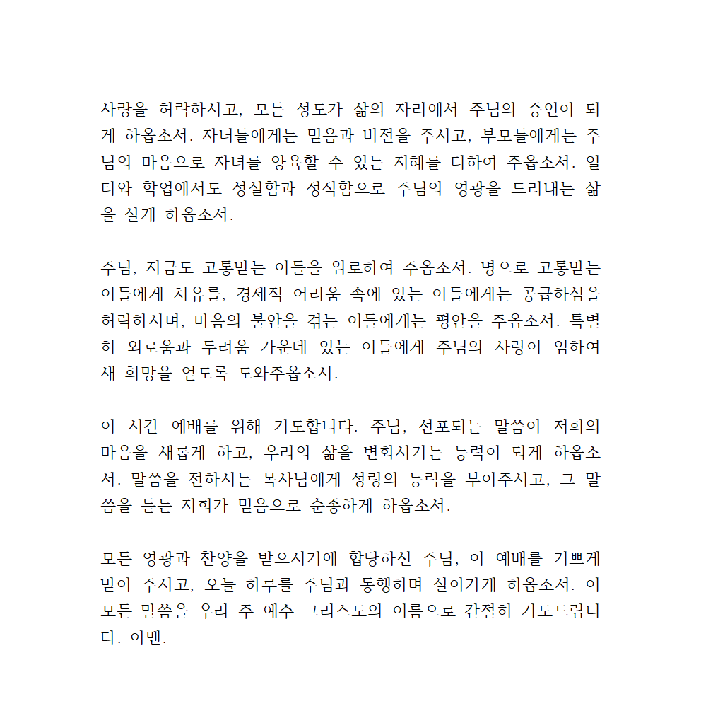 ※ 기도문을 한글 문서 or PDF 문서로 받으시려면 아래를 참고하세요.