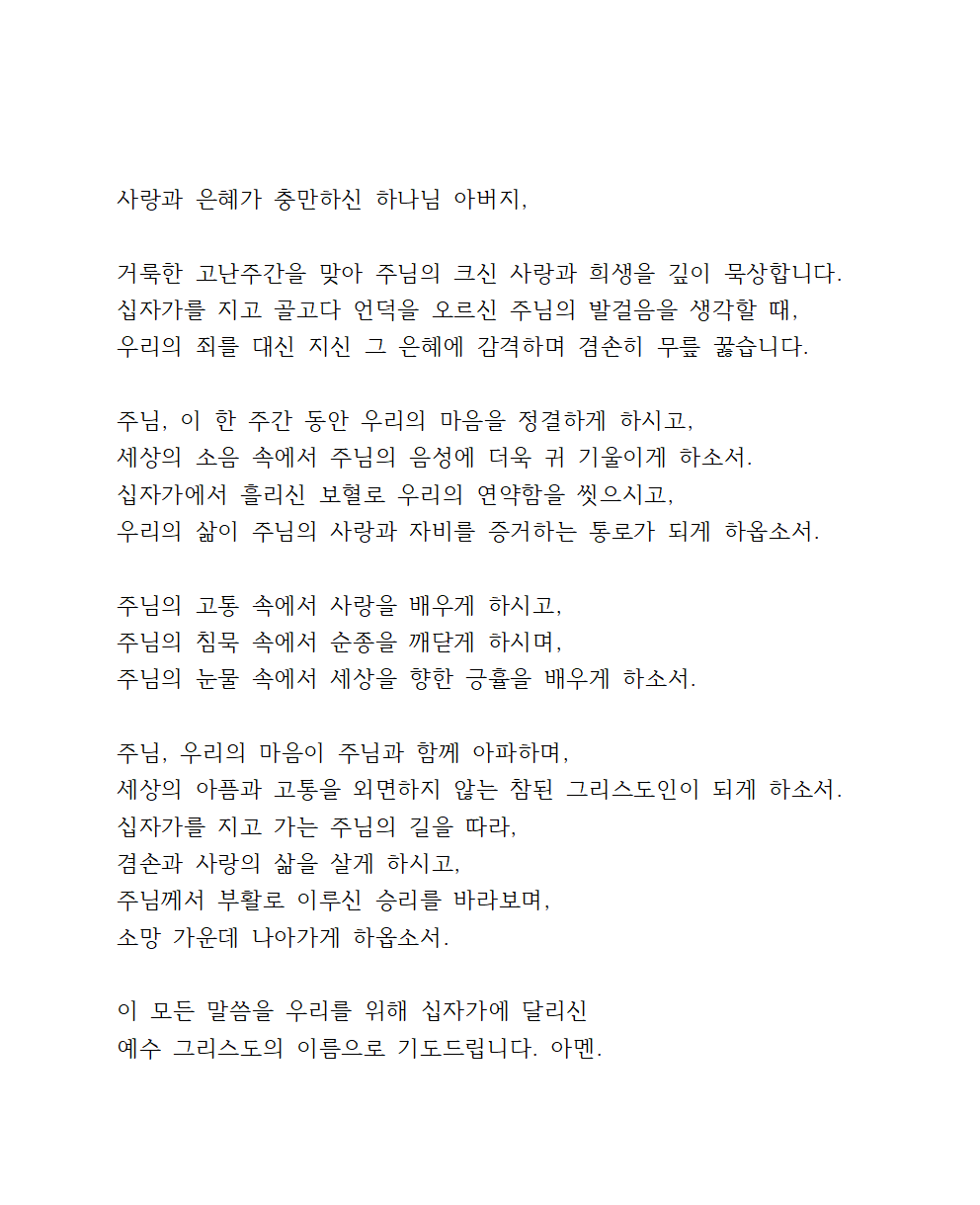※ 간단한 형식의 고난주간 기도문이 필요하시면 다음을 참고하세요.