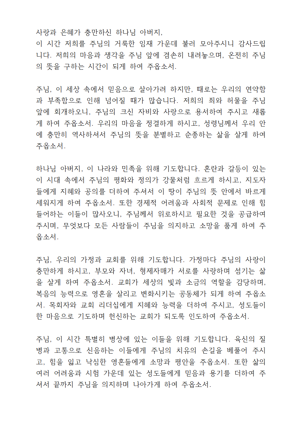 ※ 기도문을 한글 문서 or PDF 문서로 받으시려면 아래를 참고하세요.