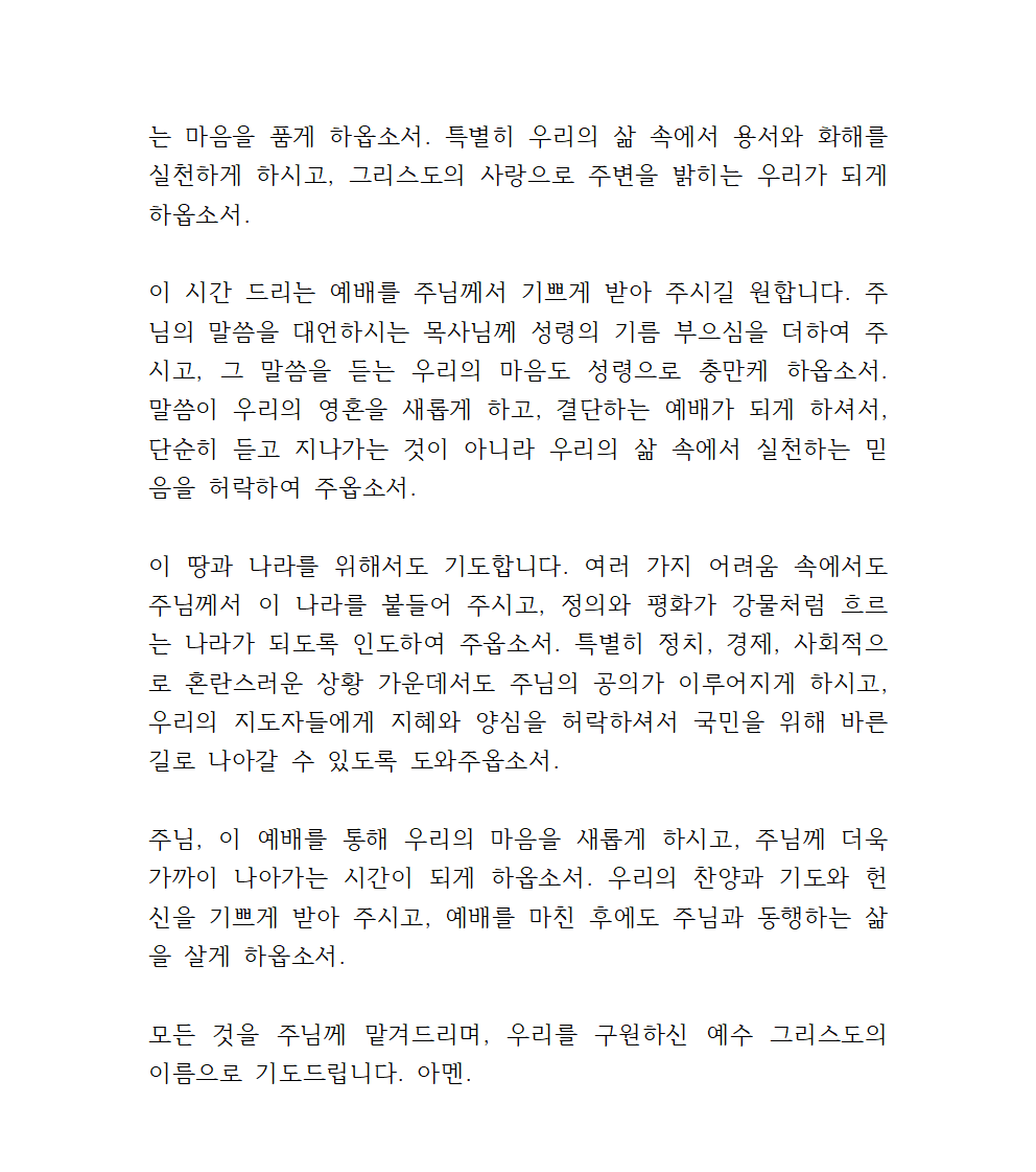2025년 2월 첫째 주일예배 대표기도문 파일 받기
