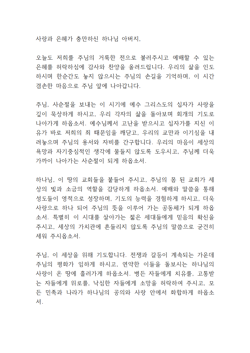 ※ 기도문을 한글 문서 or PDF 문서로 받으시려면 아래를 참고하세요.